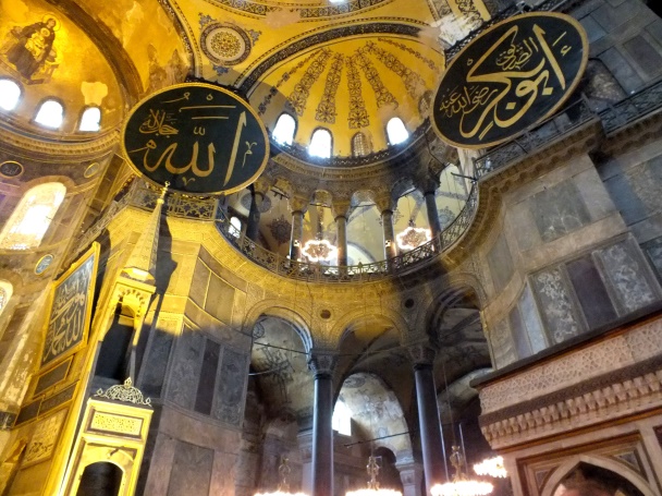 The Hagia Sophia was on my Bucket List of places to experience; in 2003, my husband and I fulfilled that wish. It was as magnificent as everyone said but strangely provocative because of the huge Christian and Islamic art and symbols side by side, dwarfing all individuals present in the massive area.