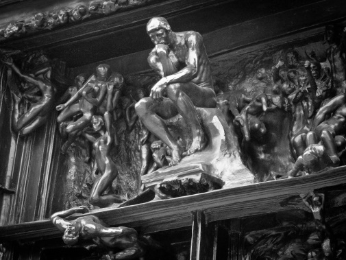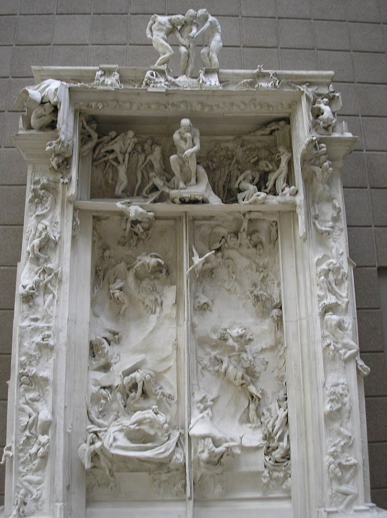 Rodin’s “Gates of Hell” is the other most famous version of “The Thinker” where a 19” Thinker sits atop a giant door and looks down at writhing bodies being sucked into hell. I’ve seen two versions of this door: bronze door at the Rodin Museum garden; plaster cast at the Musee d’ Orsay, both in Paris, France. They are massive, impressive—and well worth seeing in person to fully appreciate.
