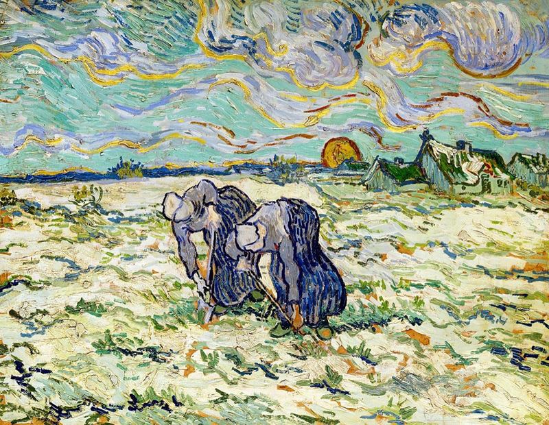 The imagery of bending peasant women gleaning was paraphrased frequently in works by younger artists at the time, including an oil painting of “The Gleaners” by Vincent van Gogh in 1890.