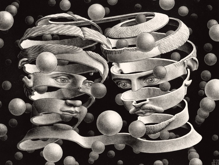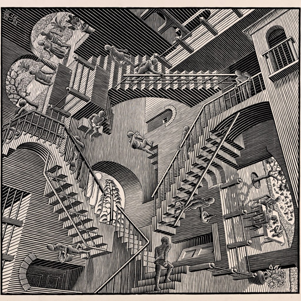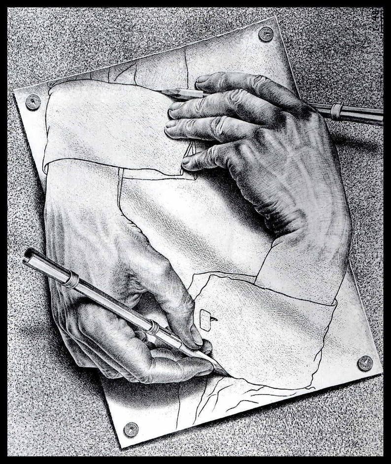 “Drawing Hands” is one of his most famous and shows Escher’s common use of paradox.