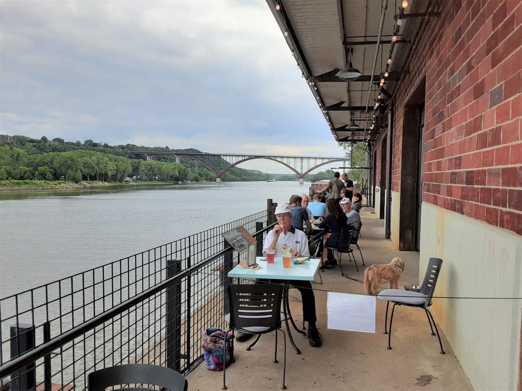 We wrapped up our Travel Date on the Mississippi with a culinary stop at the seasonal home of City House, right on the river, located in a restored grain elevator. Just upstream from Raspberry Island, it is across from the Harriet Island Pavilion. We sat on the patio and enjoyed watching river barges and kayak rowers glide along the river.