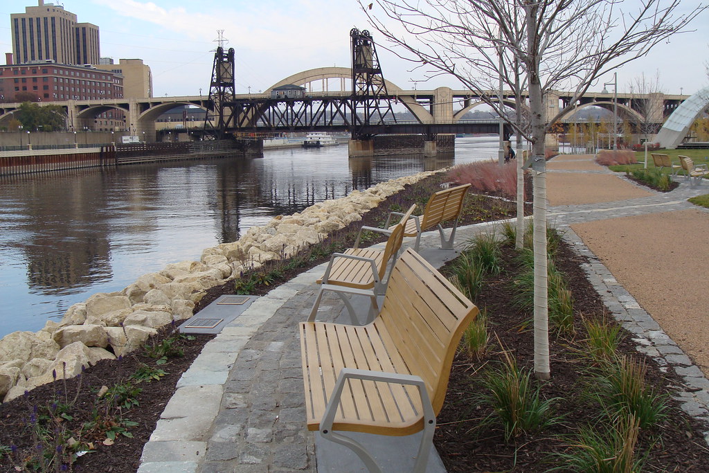 In 2007-08, the island was redesigned by St. Paul Parks & Recreation, financed by a grant from the State of Minnesota. This created a welcoming site to help people connect with the Mississippi and a respite from the city which looked down upon it.