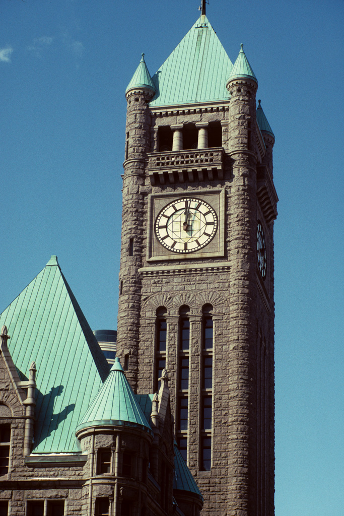I was intrigued by the fact that, after the building’s completion, not only did both Hennepin County and the City of Minneapolis government offices move in – but also a blacksmith shop, a horse stable, a wool brokerage, and a chicken hatchery came to live in the new City Hall.