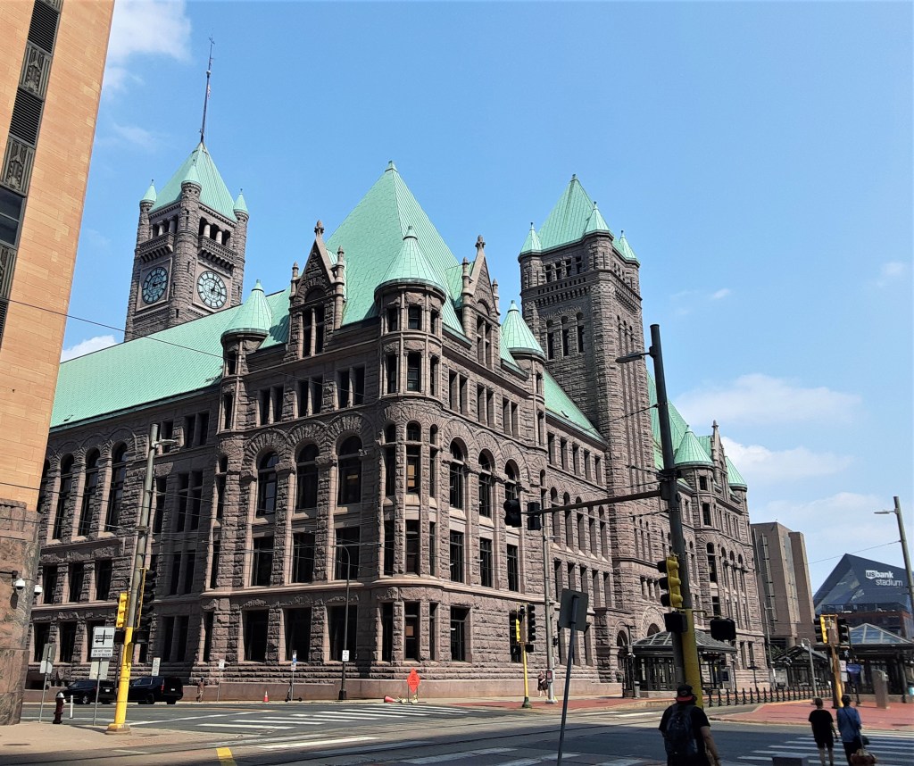 On our recent Travel Date to the world-class city of Minneapolis, Minnesota, my husband and I included a visit to Minneapolis City Hall & Hennepin County Courthouse. Its history, architecture, art, lore and family tradition provided a memorable trip.