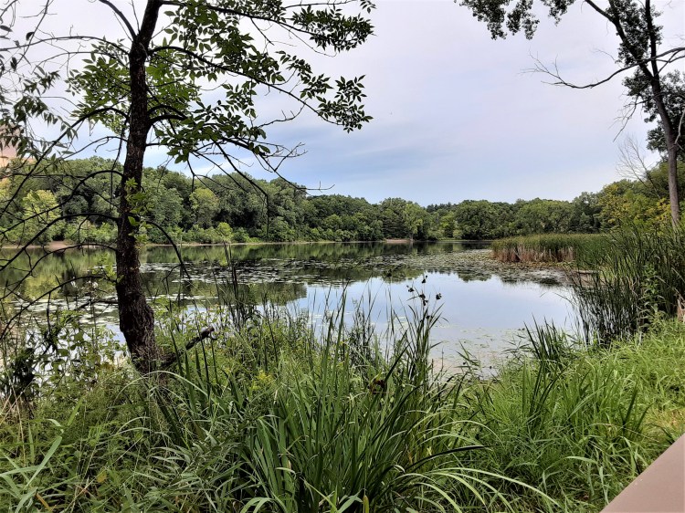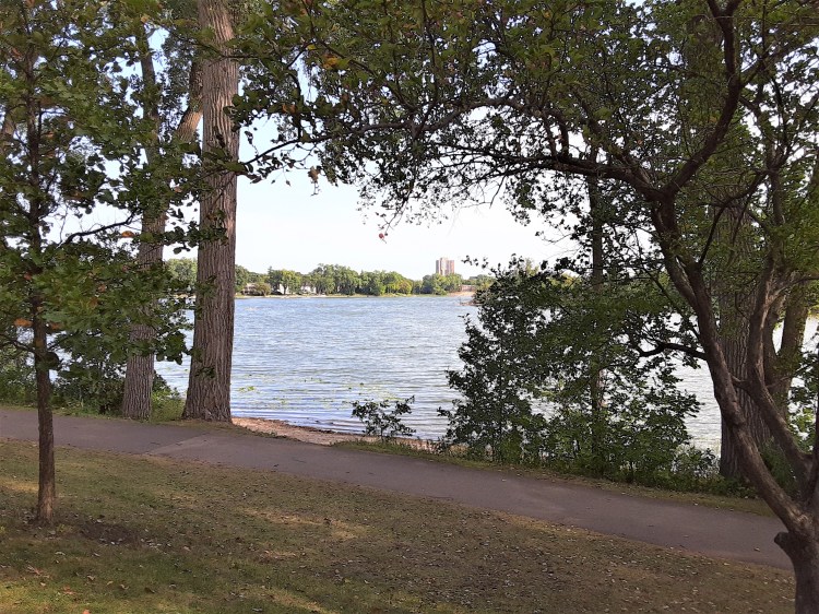 With only a mile of shoreline, with paths winding in and out of a wooded area, it is a hidden retreat where one can easily forget that one is in a major city, next to a busy highway (I-394) and a short distance from downtown filled with skyscrapers.