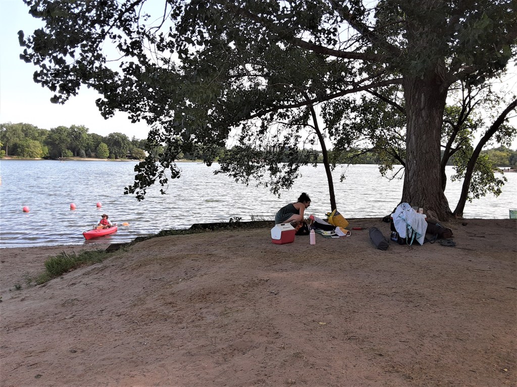 I enjoyed the more relaxed, family atmosphere 0f the two west beaches of Cedar Lake. Kids were fishing while their parents read, perched on tree roots along the shore or swinging in hammocks. It was much quieter.