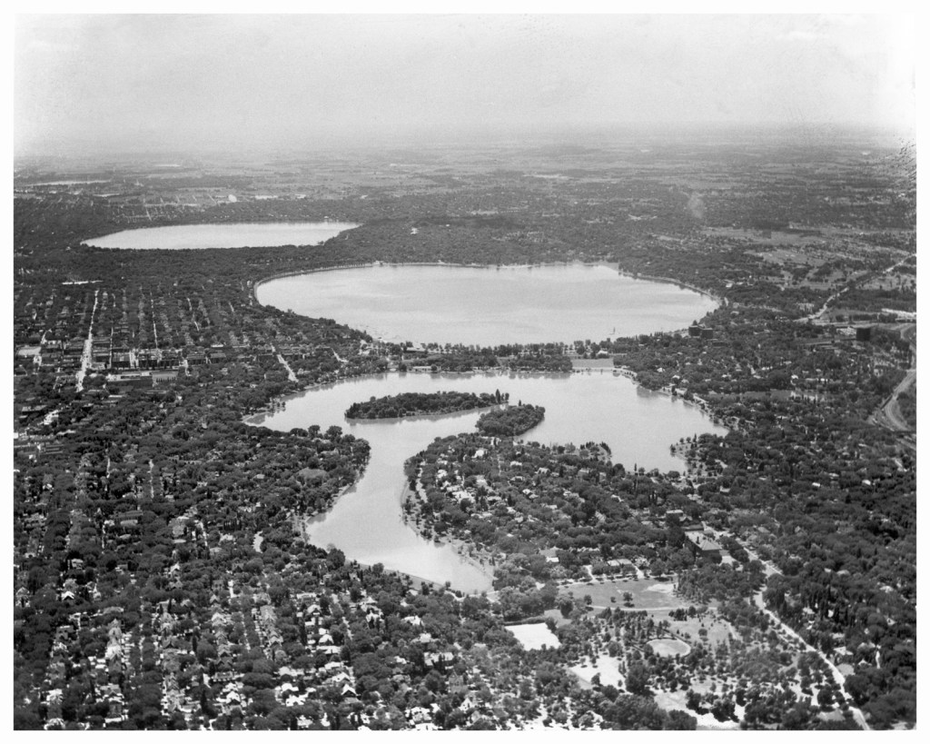 Above photo is looking south with Lake of the Isles (front), Bde Maka Ska (center) and Lake Harriet (back).