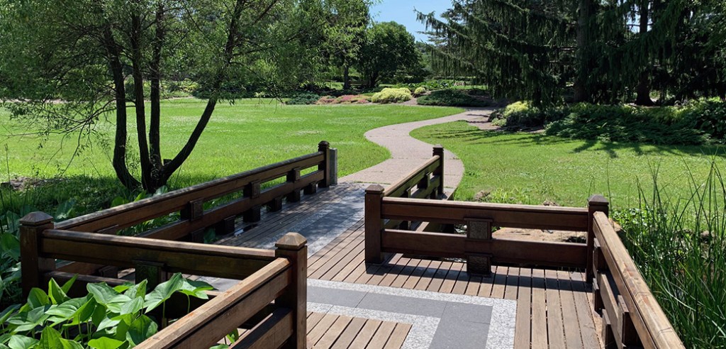 The Peace Garden Bridge, a centerpiece of the park, was installed in 2009. According to Japanese tradition, it is constructed in a zigzag pattern to prevent evil spirits from following people into the garden.
