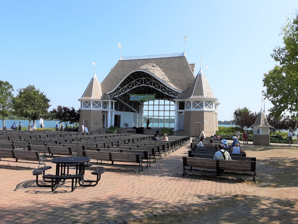 Beginning in 1888, there have been several pavilions in this spot. In the early years, it was accessible by bicycle and street railways. One built in 1925 lasted until the current one was built in 1986. This Victorian style pavilion is the first to provide the audience with views of the lake while enjoying a concert.