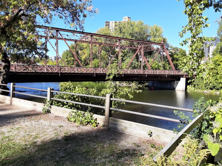 In 1867 the first railway bridge across the Mississippi in Minneapolis was built, separating the industrial south of the island with the residential north. Today, the Minneapolis BNSF Rail Bridge (1893 replacement) still does.