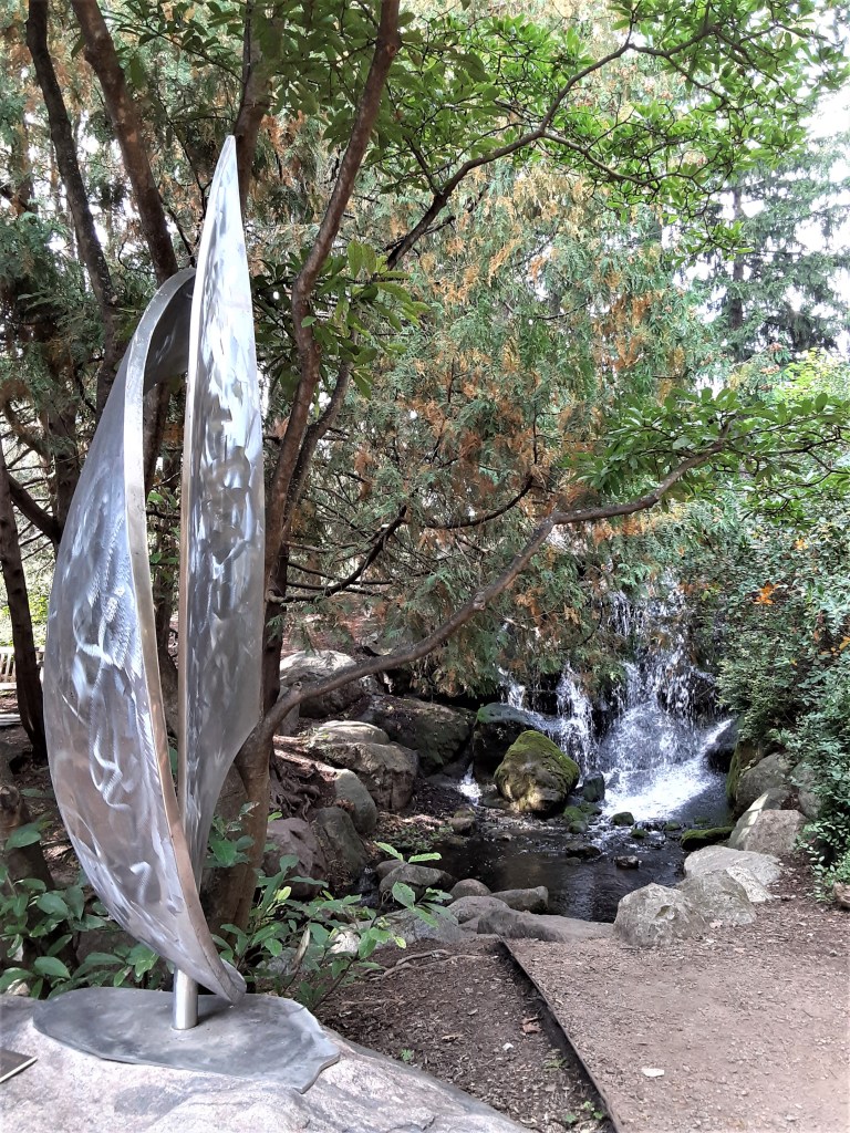 Works are sited around walkways leading up to the peaceful grove of Kentucky Coffee Trees that encircle the highest viewpoint at the Arboretum. My only complaint (?) is that they were so numerous, I regretfully missed many of them that I’d love to see. (Another trip??!!)