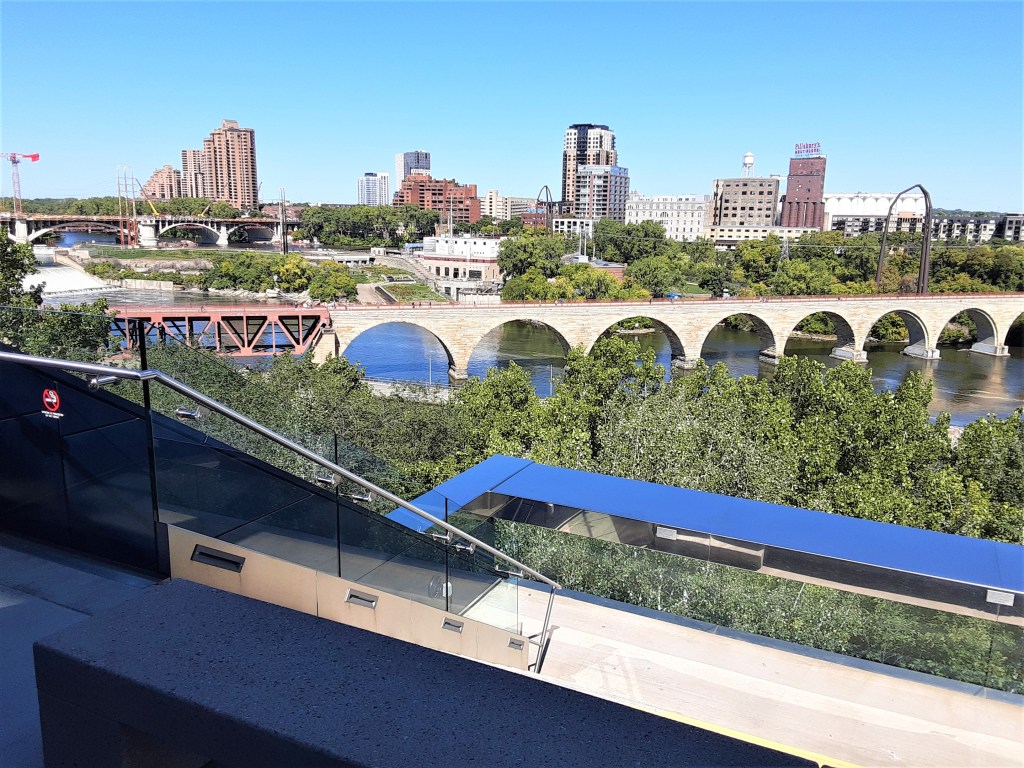 The Guthrie was designed to be a resource for the entire community. Their lobbies and public spaces are now open to enjoy (check website for hours/days). Free. No reservations are needed. We took advantage of this opportunity on our recent Travel Date to the Mississippi Heritage Trail. (See blogs on St. Anthony Falls, Stone Arch Bridge, and Nicollet Island included in this adventure.)