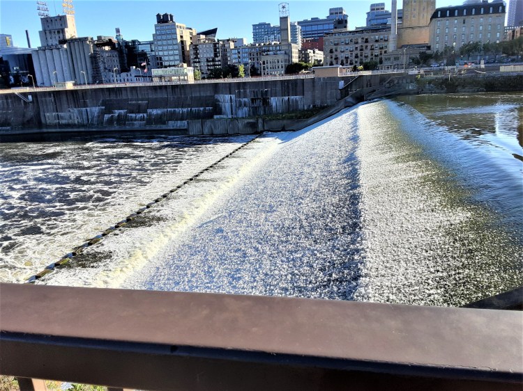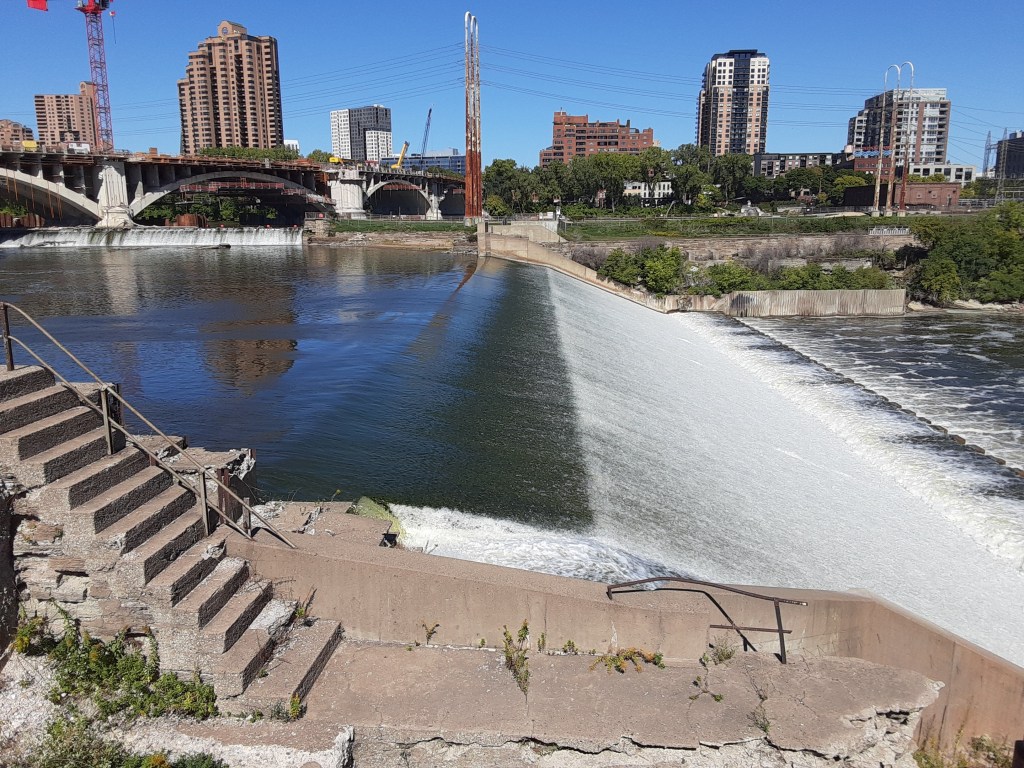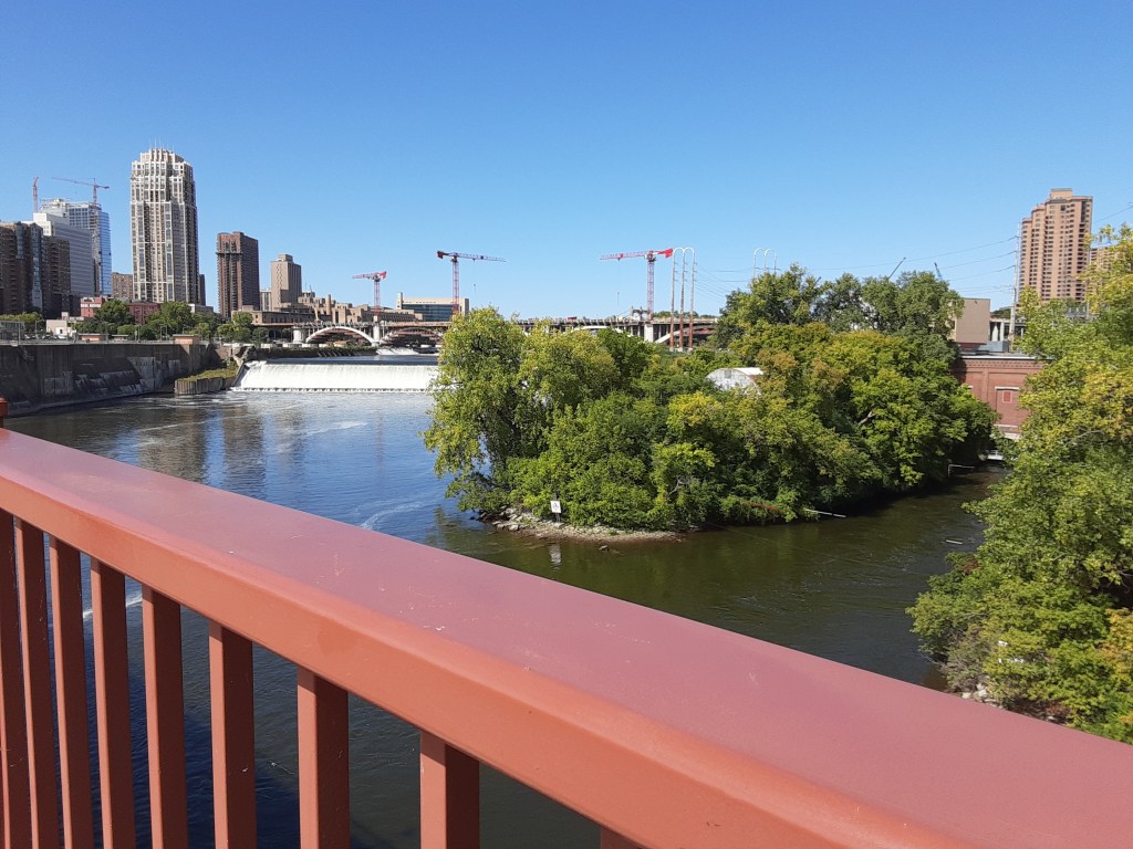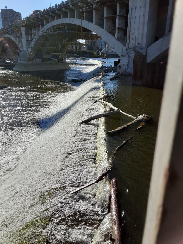 View of St. Anthony Falls and Hennepin Island from the Stone Arch Bridge. PC Cher B. 9/18/21