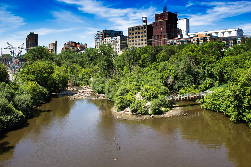 Fr. Hennepin Bluff Park offers direct access to footpaths and bridges that display a unique view of the Mississippi Gorge, the downtown Minneapolis skyline, and the Stone Arch Bridge.