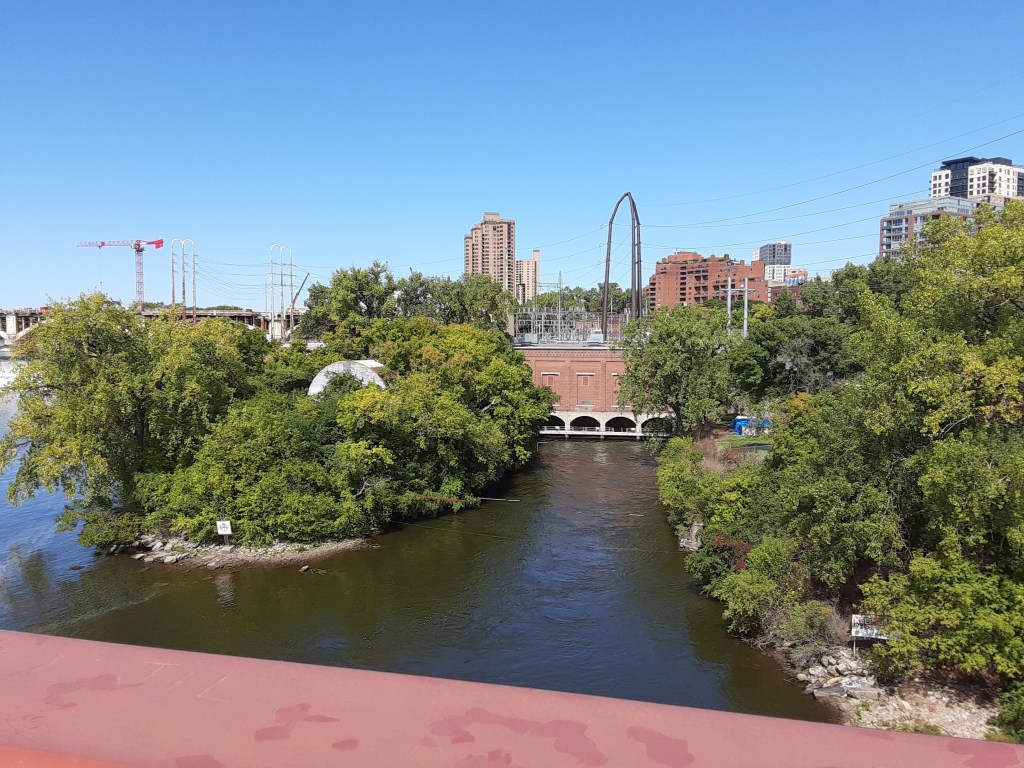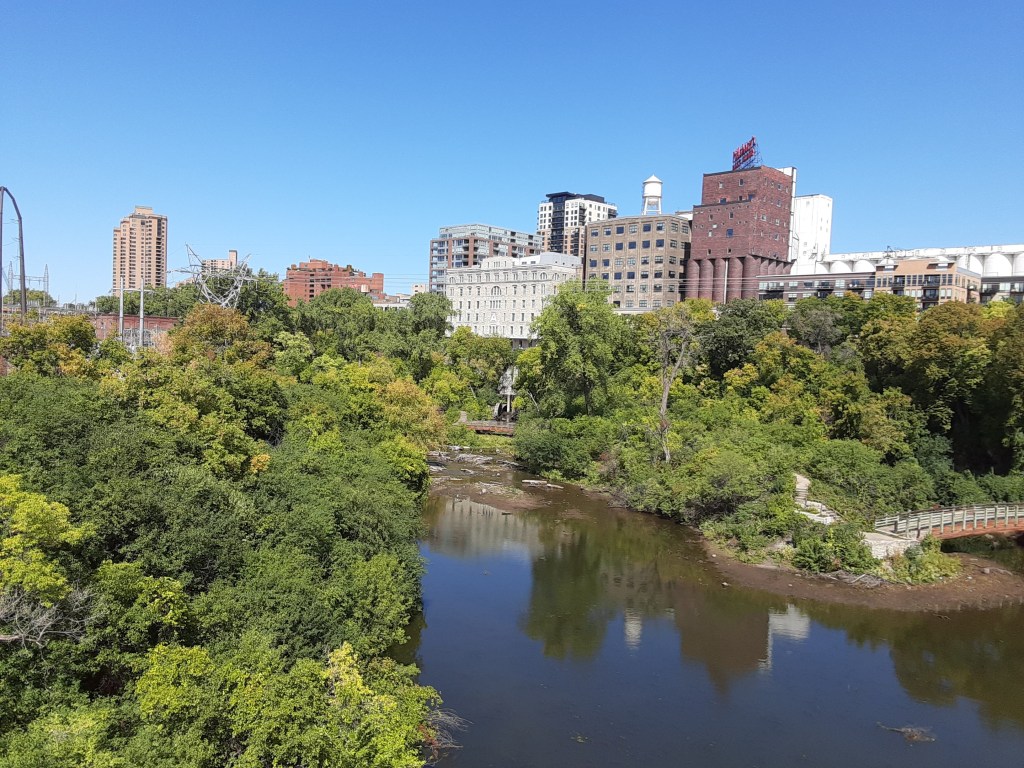 View of Hennepin Island and the skyline of St. Anthony Main area from the Stone Arch Bridge. PC Cher B. 9/18/21