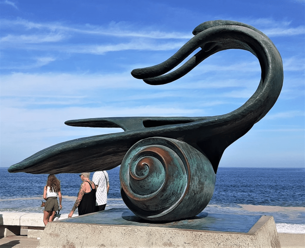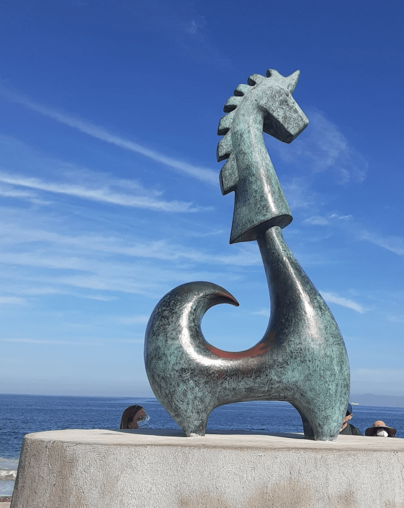 The first sculpture placed on the Malecon, it is one of the two symbols of the city, along with the church. Standing 9′ high, and in the center of the letters spelling out Puerto Vallarta, it welcomes the viewer to the city and the waterfront.