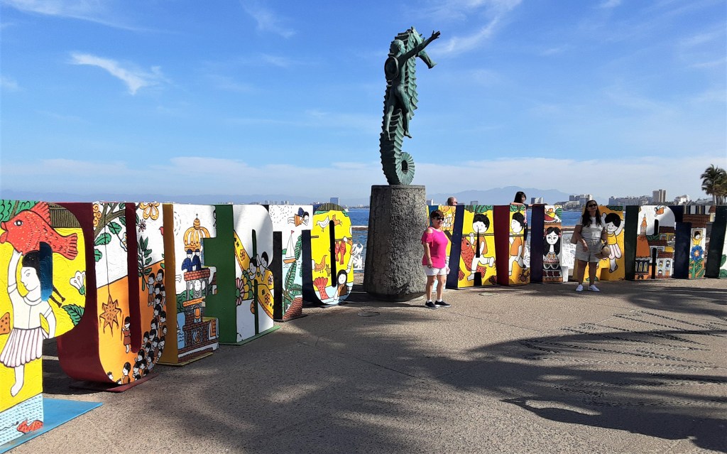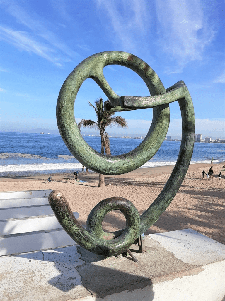The Malecón is a 12-block, mile-long esplanade that winds along the Vallarta beach front. It is filled with shops, cafes and bars, sandy beach, lots of sculptures – and great views!
