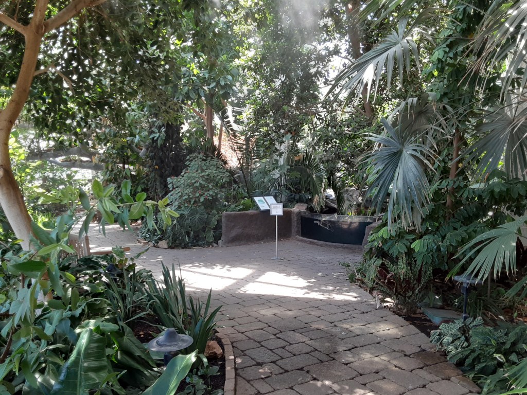 The Palm Dome is 64′ high and 100′ in diameter with more than 150 palm species, as well as orchids and bromelaids on a rotational display.