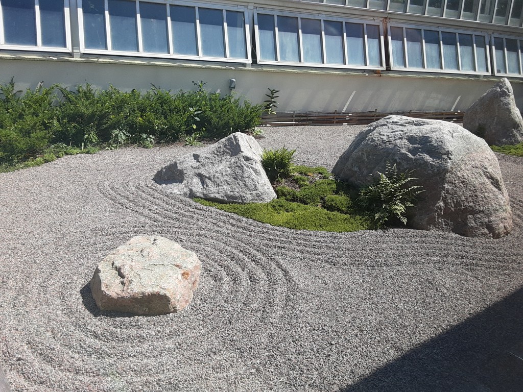 This Zen Garden just outside the Bonsai Room is a new addition to the space. It can be visually experienced through the windows of the hallway connecting the Palm Room and the Bonsai Gallery as well as from the exterior garden courtyard. Though unable to walk in the space, its peaceful patterns add to the restfulness of the garden visitor.