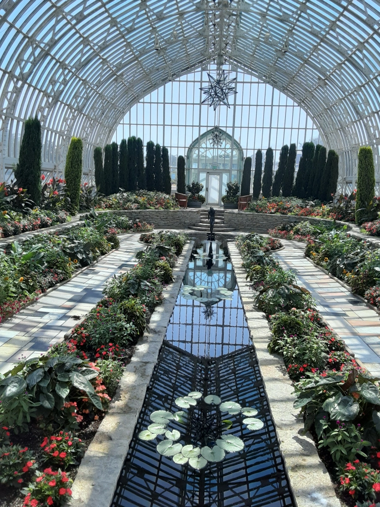 The picturesque Sunken Garden is my absolute favorite room – as it is for countless others. A favorite venue for weddings, the interior of the Sunken Garden in the conservatory rotates its five seasonal flower shows with the seasons and the holiday. This one is a summer display.