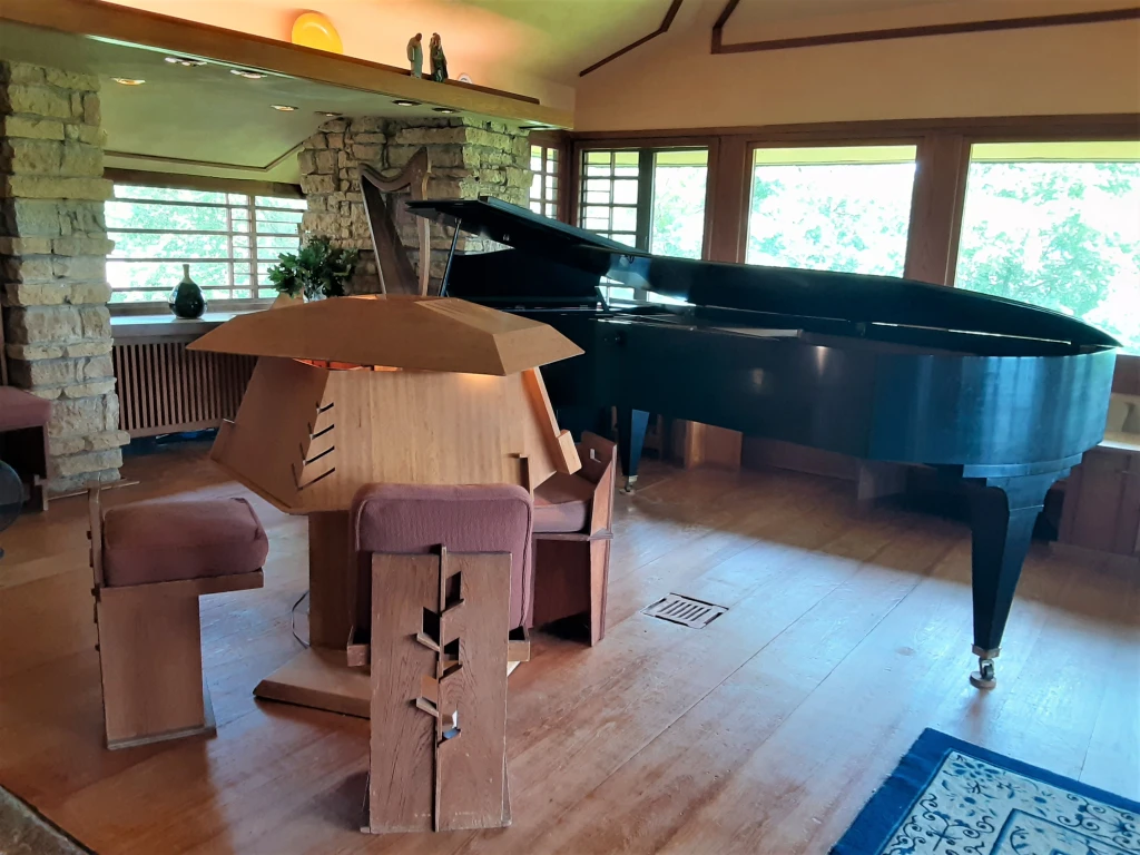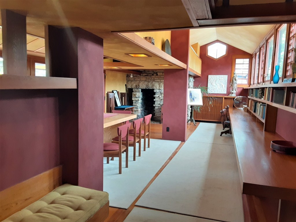 The Drafting Studio was added in 1939. Unique is its 5,000 square feet, wood ceiling design which was meant to be Wright’s contemporary version of an “abstract forest.”