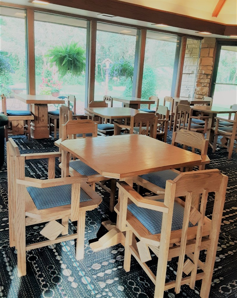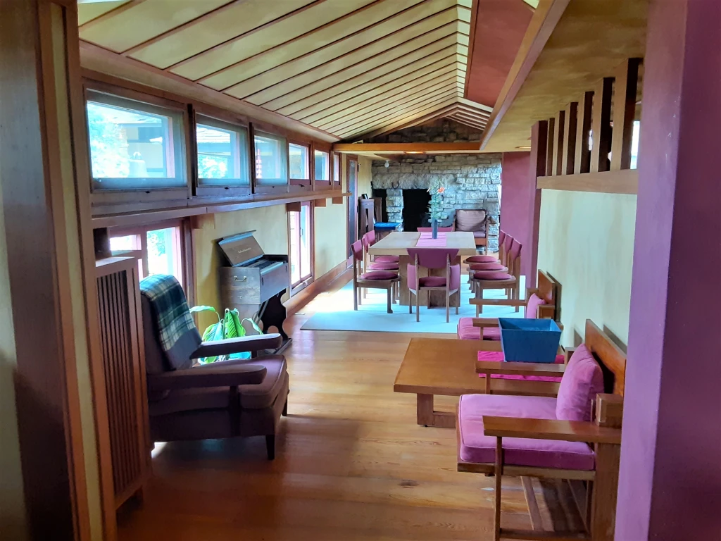 The Dining Room was added in 1955 as a place for fellowship along with food. It showcases the fascinating progression of Wright’s architectural journey.