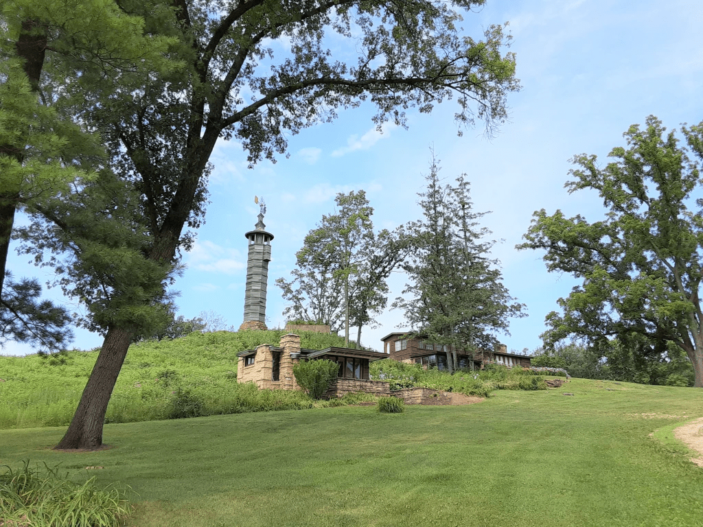 Nestled among the gently rolling hills in the Driftless Region of southwestern Wisconsin is the estate of world-renowned American architect, Frank Lloyd Wright. The site – Taliesin – includes Wright’s 37,000-square-foot home, studio, school and 800-acre estate. Buildings from nearly every decade of his career are represented – from the 1890s to the 1950s.