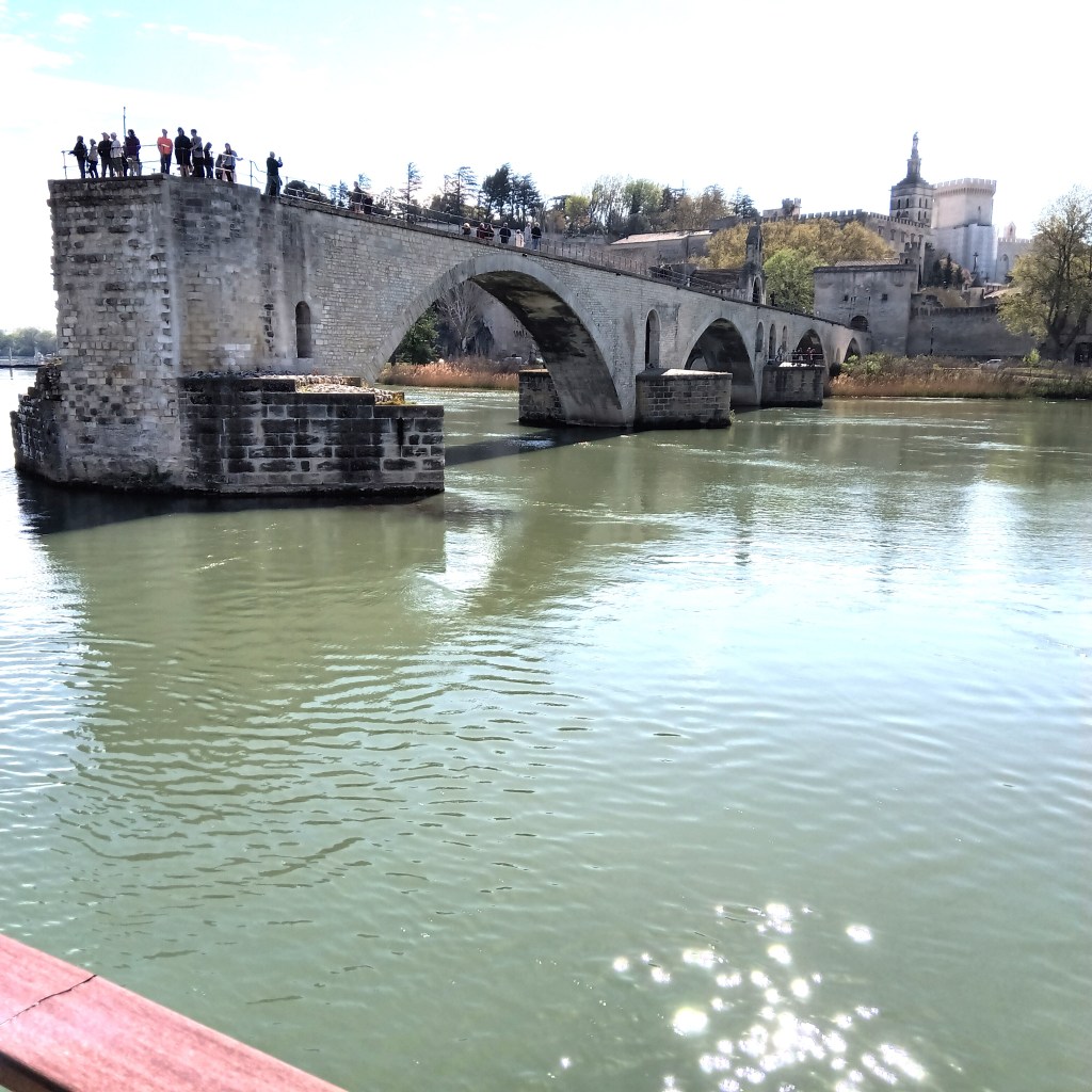 The Pont St-Benezet is the first sight one experiences when arriving by river. It is commonly known as the Pont d’ Avignon – or Bridge of Avignon. Spanning the Rhone River, one is first struck with the fact that it seems to be a “bridge to nowhere!” Technically – it is! Built between 1177 and 1185, there were 22 original arches. Only four remain today. Most of this 12th century monument was washed away during floods in mid-1600s and not rebuilt.