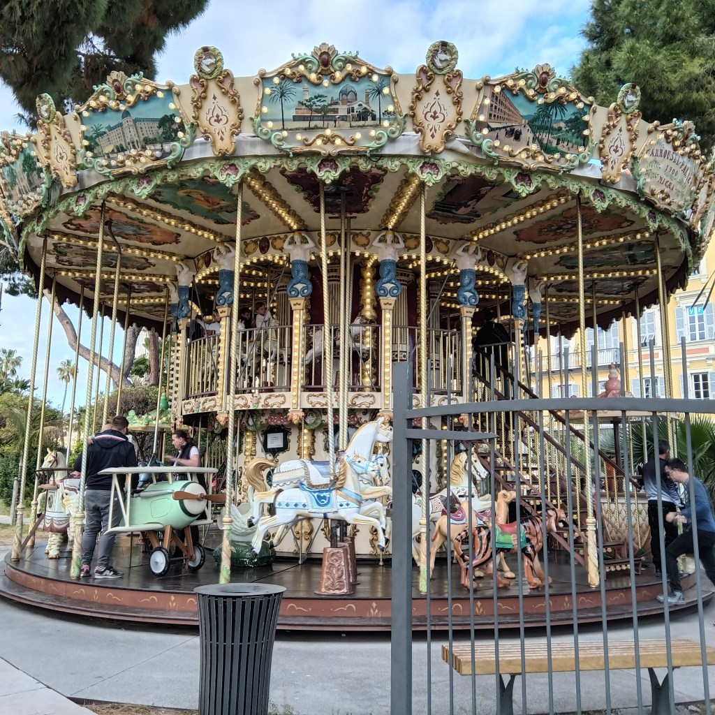 Since early childhood, I absolutely LOVE carousels! I recalled the many carousels I viewed in past visits to France. On this trip I intentionally set to discover and experience as many carousels as I could. It was grand adventure! I’ve dedicated a separate blog just to them. In my Nice wanderings, I discovered two: one in Jardin Albert and one in The Cimiez.