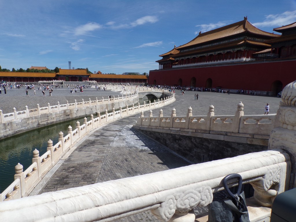 Entering the palace complex, one is first greeted with a curved river of “Golden Water” which runs west to east. One then must cross one of five bridges, symbolizing the five cardinal virtues of Confucianism. Crossing a bridge, one gains entrance to the Gate of Supreme Harmony and the rest of the complex.