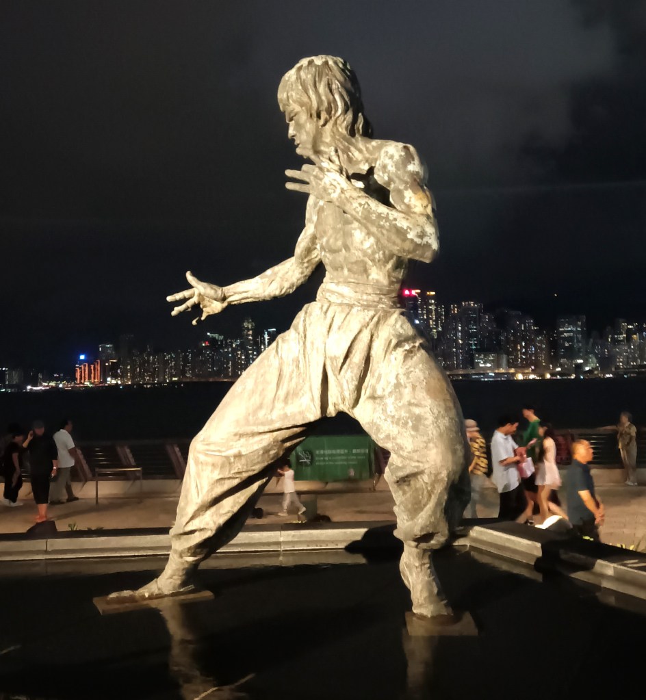 This iconic statue of the late legend, Bruce Lee, is installed on the Kowloon side of the Victoria Harbour. Strategically located in front of a two-story Starbucks, the statue showcases his signature move of being ready to strike from the 1972 hit; Fist of Fury. Interestingly, this was a major stop and marked “highlight” on our waterfront guided tour!