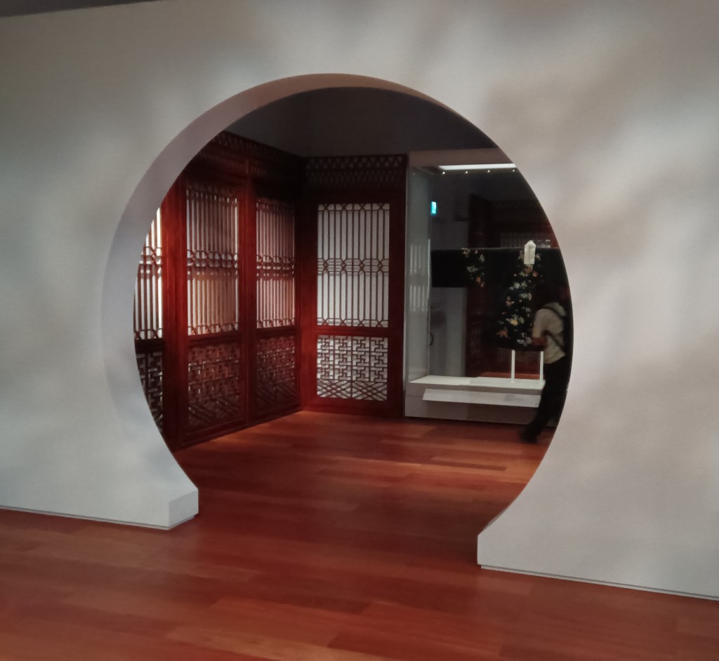 Entrances such as this “moon gate” added interest and intrigue to our museum experience. During our time in China, we had experienced this circular opening in Chinese gardens where it is a traditional architectural element. Symbolizing the moon, an important celestial body in Chinese culture, it is designed to create a harmonious transition between spaces, interior or exterior gardens. This pedestrian passageway is thought to bring harmony, good fortune and blessings to those who pass through, drawing us into the space beyond!