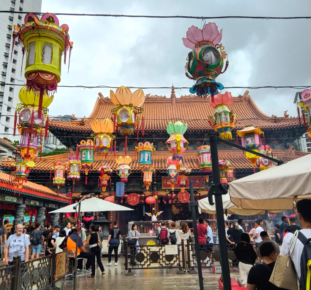 The Wong Tai Sin Temple was an experience of its own. It was filled with bright, colorful sights and a mixture of noisy, chaotic sounds. The endless variety of conflicting smells of foods and incense tickled my nose. The personal touch of the bustling crowd of people jostling against me and one another made me a literal part of the experience. Combine these elements with the impact of the spiritual nature of the temple – and it all added to the sensory overload of this visit!