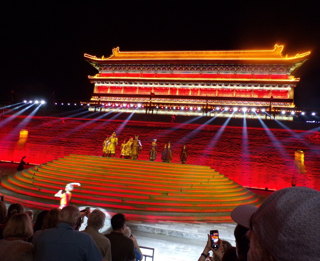 The first night in Xi’an, we attended a spectacular Tang Dynasty ceremony which greeted guests at the Yongning Gate Square. Literally under the foot of the Xi’an City Wall, the Chang’an Impression performance – “A Dream Back to Chang’an” – demonstrated the vitality of its city life during that glorious historic time.