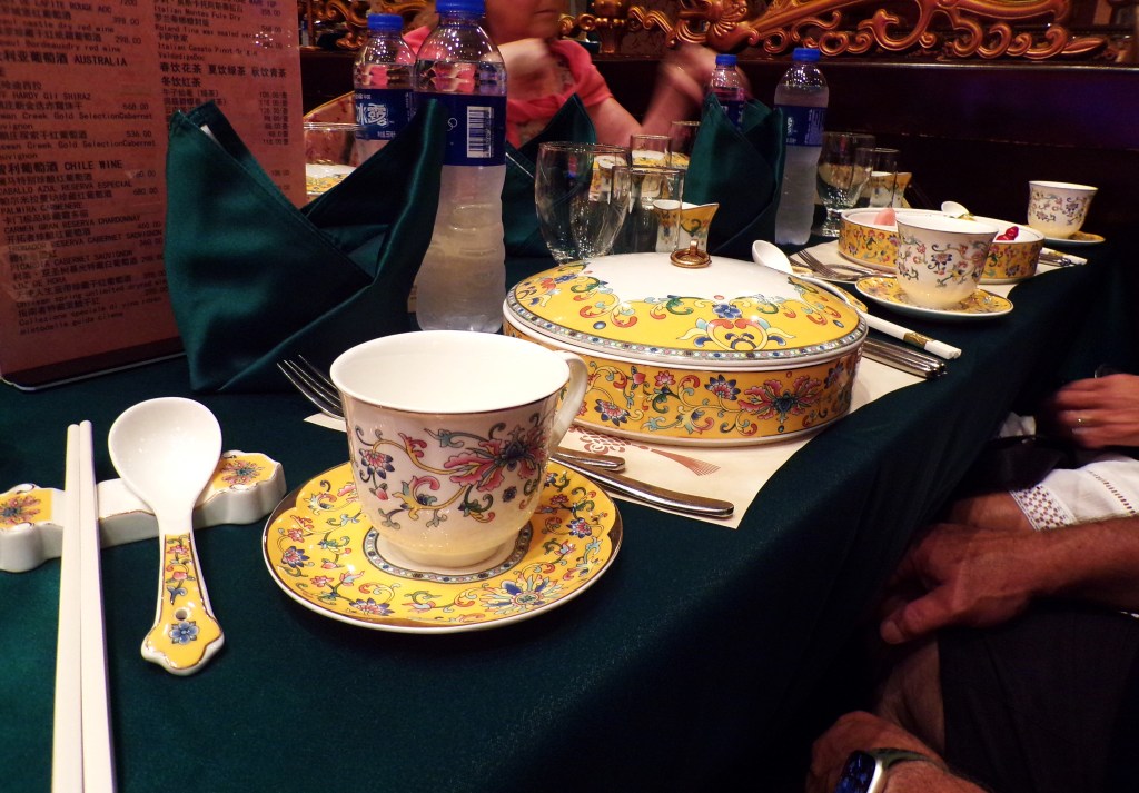 Immersed in the enchanting decor of this famous restaurant, we enjoyed a multi-course, delicious meal, served in countless (I tried, but lost count!) sets of gorgeous china tableware. Our meal was accompanied by traditional Tang Dynasty music and dance. Dancers in flowing costumes paraded past our dining tables so closely that we could touch them.