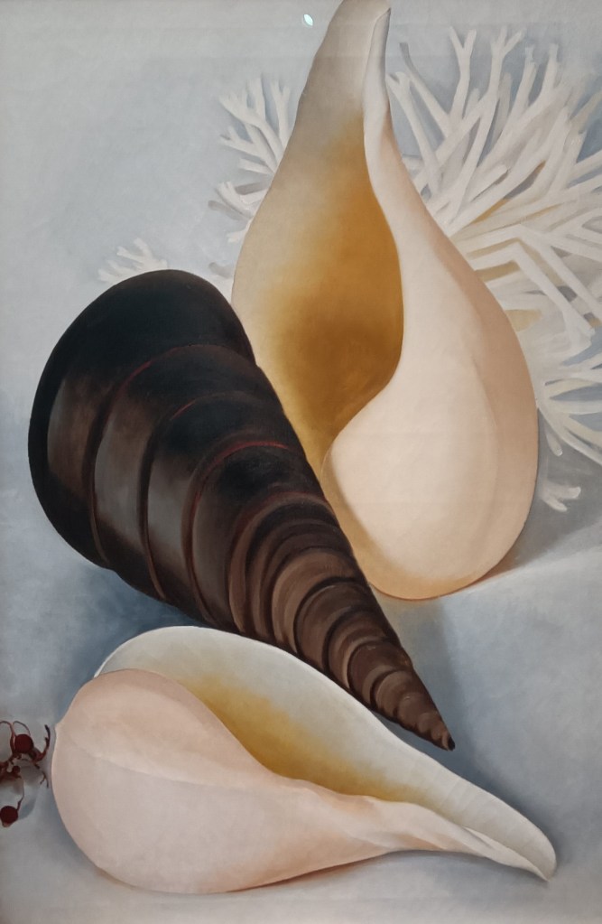 O’Keeffe loved painting shells. She is recorded as saying “I have picked up shells along the coast of Maine and farther south, in the Bermudas and Bahamas I found conch shells along the pure sandy beaches. Each shell was a beautiful world in itself.” (Quote printed on placard at museum)