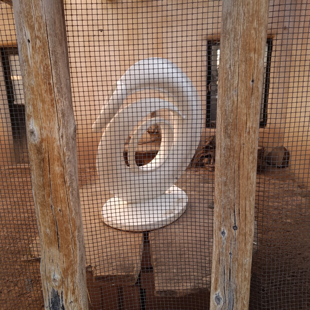 “Abstraction” in white in the patio enclosure at O’Keeffe’s Abiquiu home.