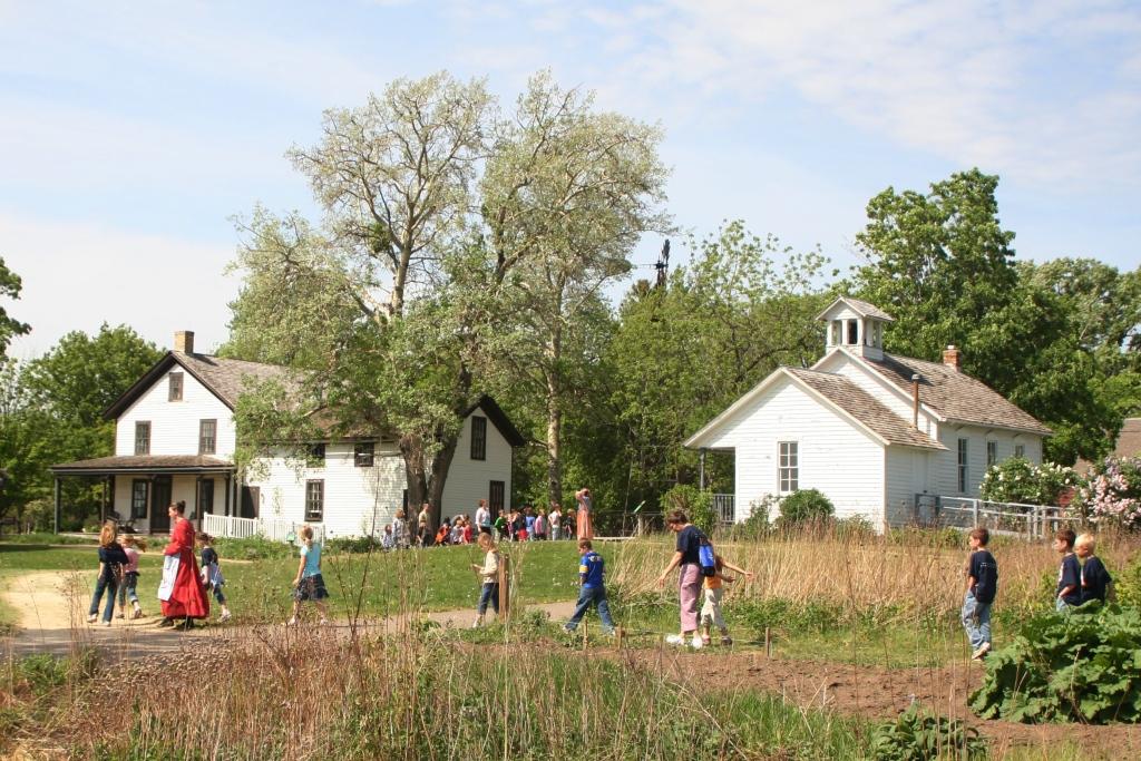 Gibbs Farm is a seasonal historic site with tours & costumed interpreters recounting a day in the life of a MN pioneer. Site contains Dakota tipi, a replica bark lodge, and a wild rice camp. The Gibbs family historic farmhouse, barns, and a replica of their first sod house, a one-room schoolhouse, farm animals, a heritage apple orchard, historic gardens, and a restored prairie grace the site are also on site.